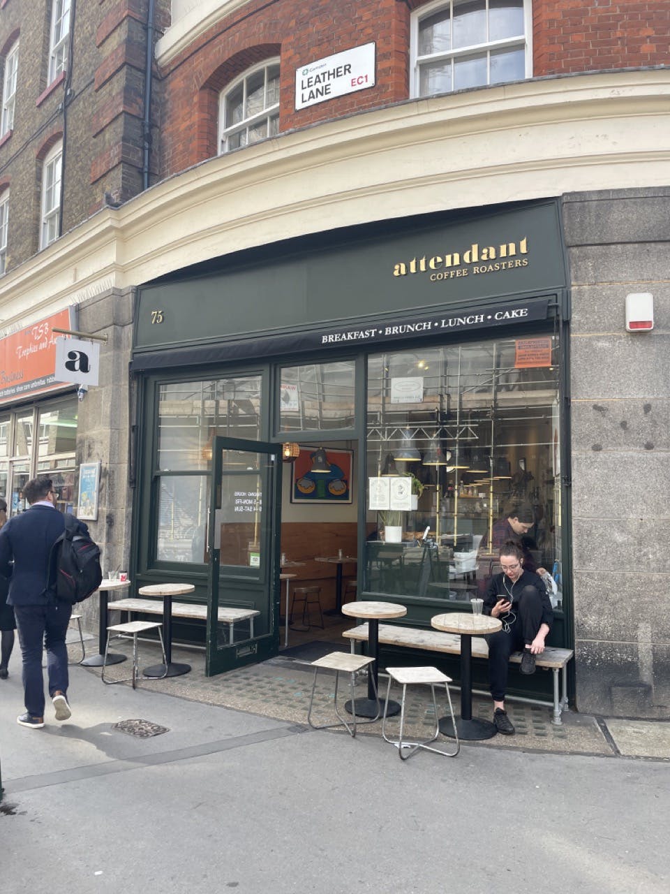 This cafe is one of a number of branches of Attendant in London. They are generally more "food" focused than cafe with the tables all being set with knives, forks and menus, however, when we asked if we could work on laptops they were totally fine with it.